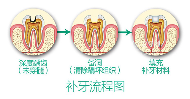 3、充填:充填就是将补牙的材料填入蛀牙的窝洞内。这个环节看似简单,其实是见证您的口腔医生技术的时刻。充填的好坏,直接导致您补牙后牙齿的形态、咬合是否自然、正常。